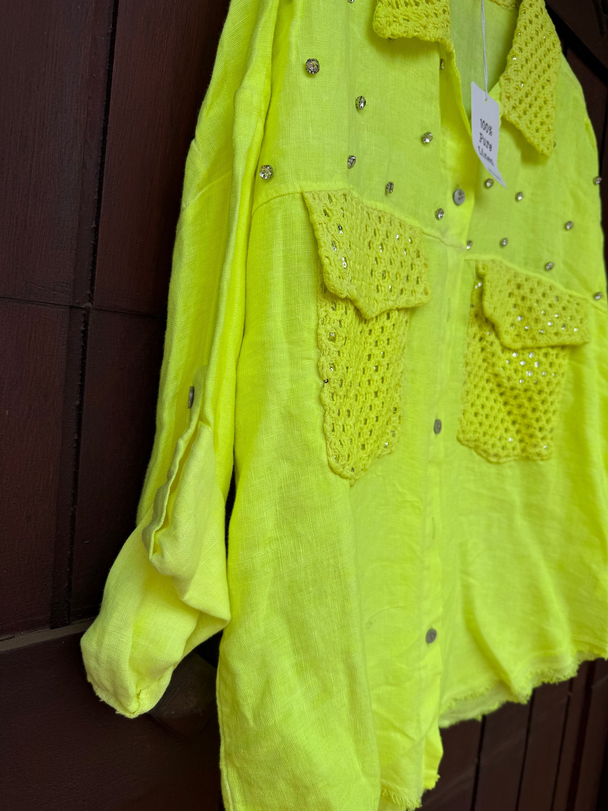 Linen And Bling Lime Blouse