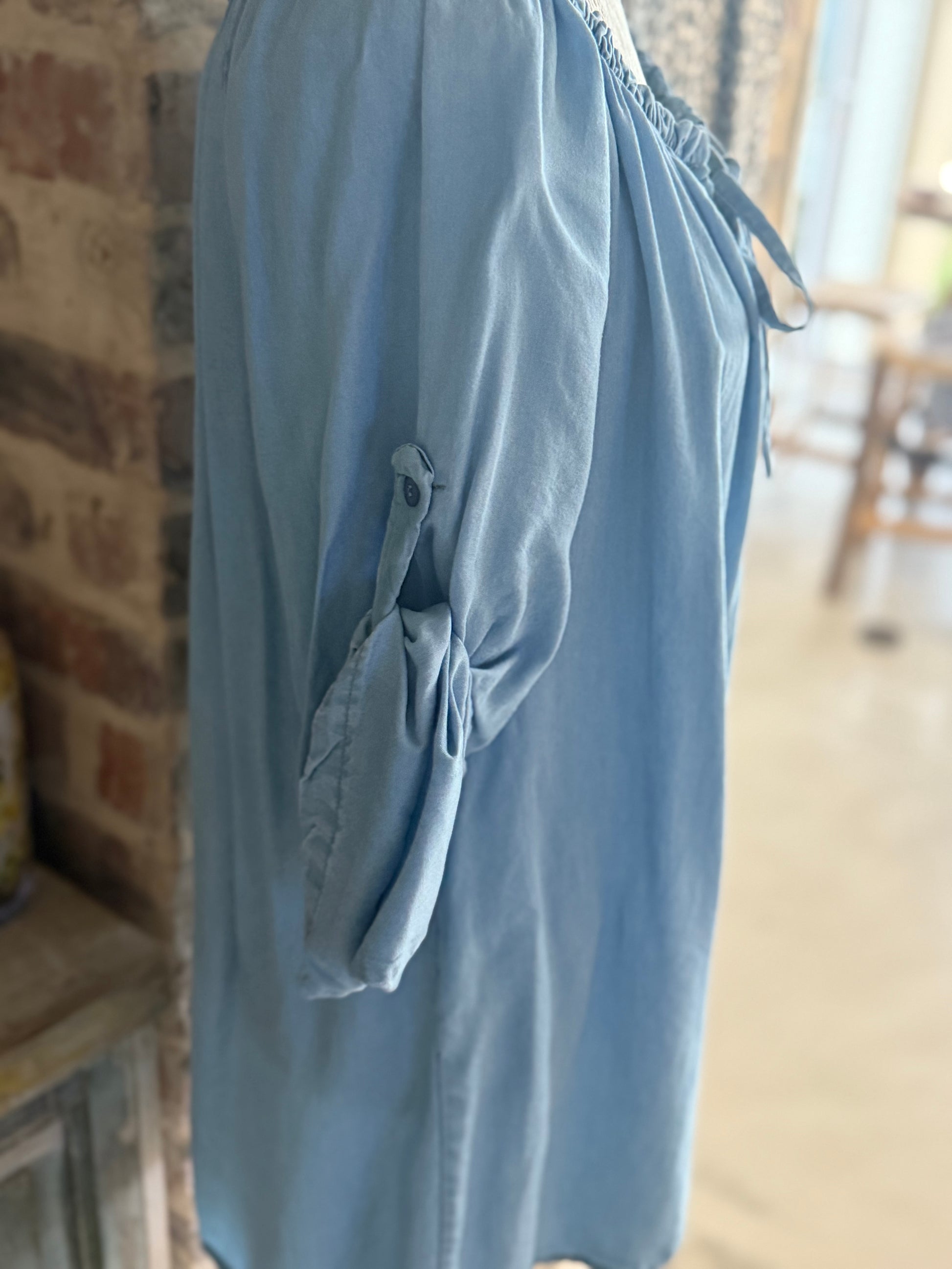 100% Tencel material, Made in Italy. This Classy Woman blouse can be worn off the shoulder and normal! It’s a beaut I tell you! Sleeves are buttoned up and can be worn down as well 🫶 Longer length at the back