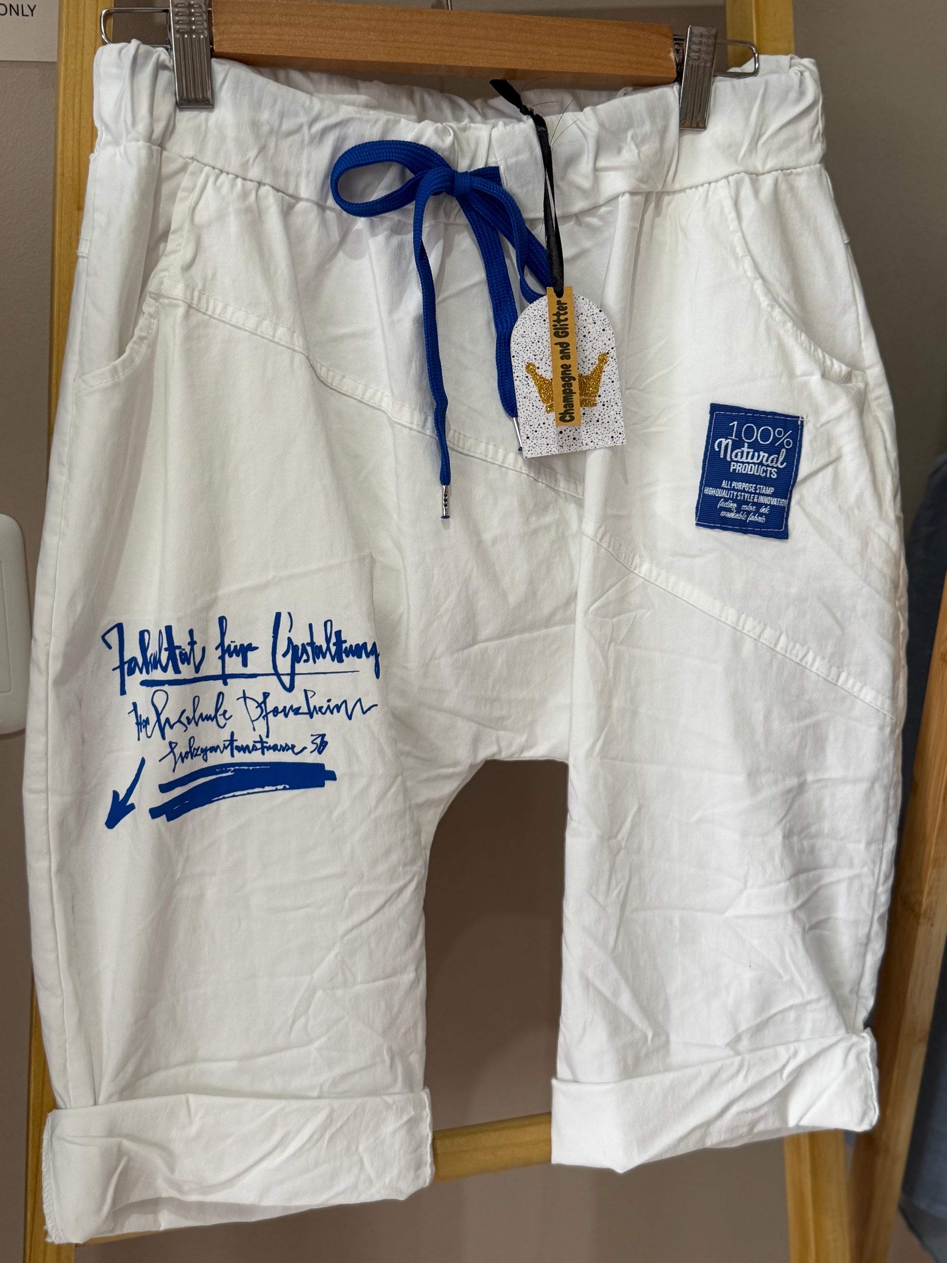 White Harem Blue Shorts